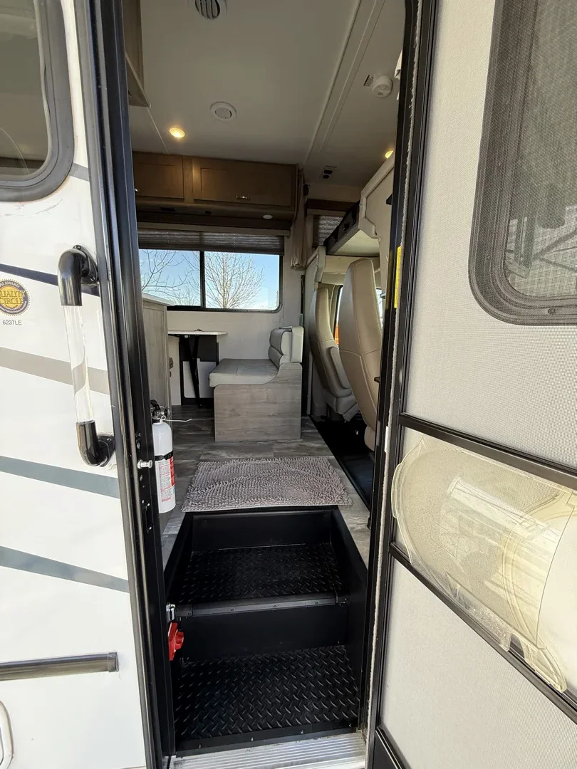 At just under 30 feet, the Pursuit 27XPS delivers all the perks of a big Class A—spacious interior, residential amenities, and panoramic windshield views—while staying easy to drive, maneuver, and park. It’s the ideal choice for first-time Class A renters or seasoned travelers who want something more approachable without sacrificing comfort.